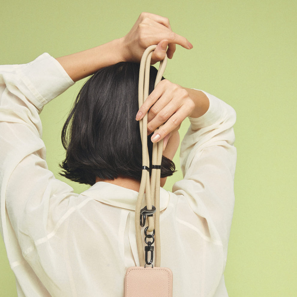 強い素材で作られた毎日使えるロープストラップです。使いやすいので、取り外しも簡単です。デザインも上質な雰囲気を演出します。