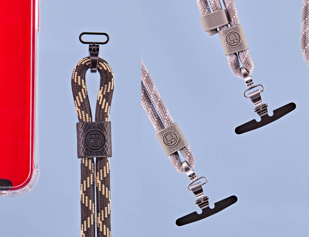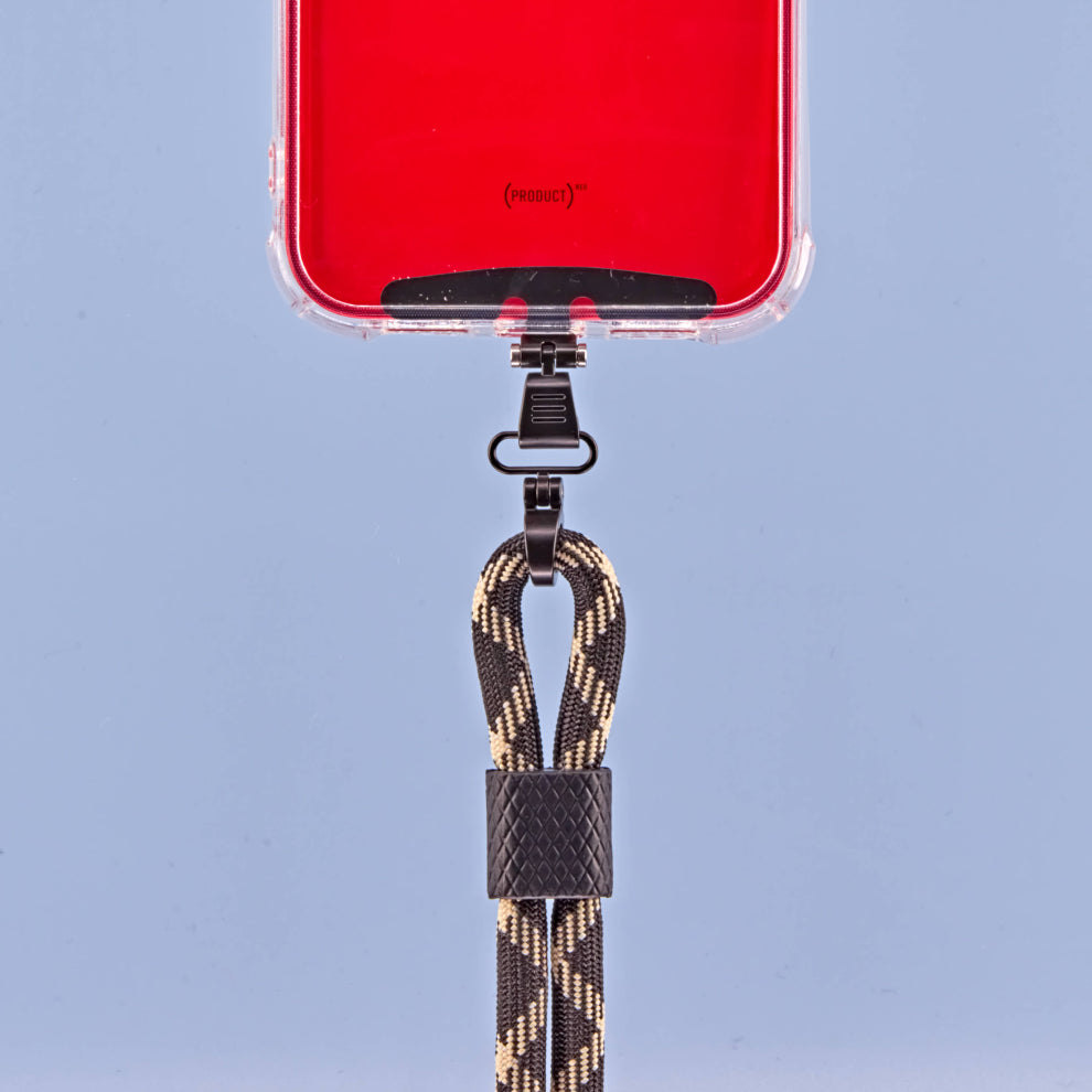 一回のクリックでストラップをロックすることができ、スマホをどこに持ち歩いても安心。ステンレス 素材の軽量でスマートなデザインです。